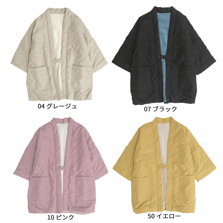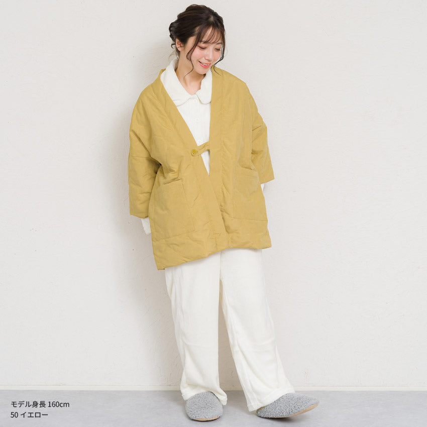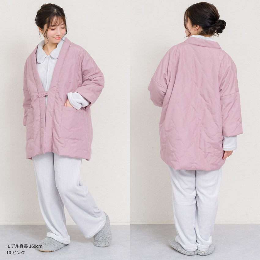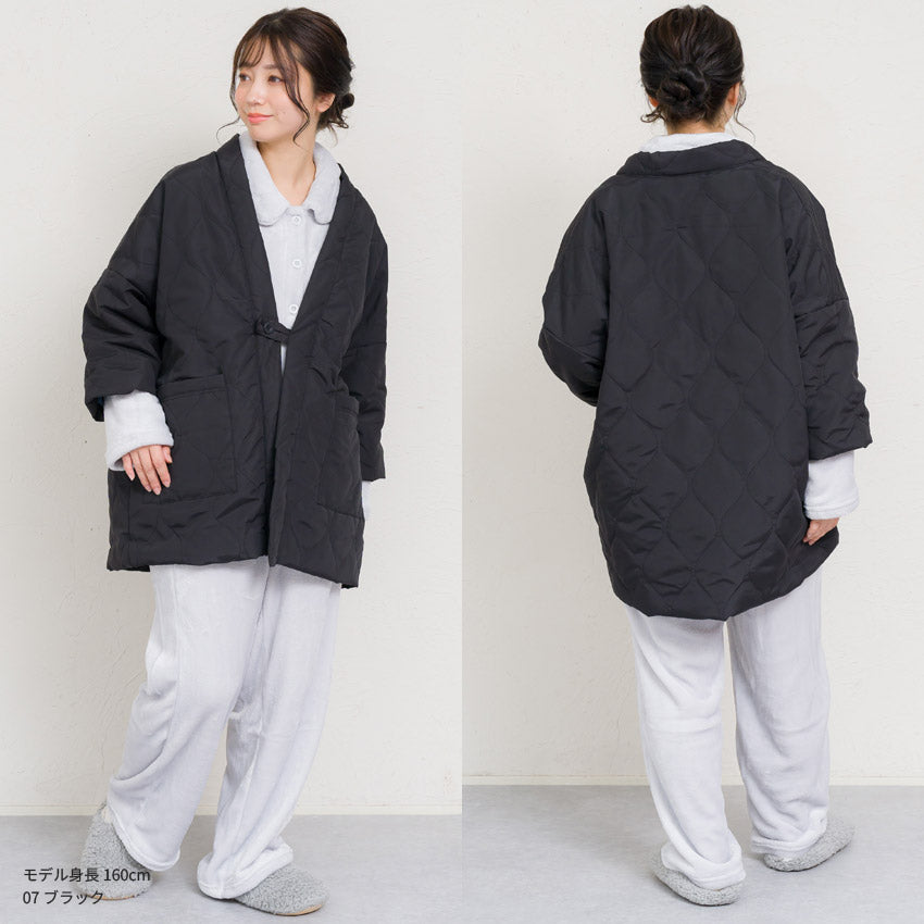 はんてん レディース おしゃれ 半纏 冬 裏起毛 裏ボア 裏シャギー ちゃんちゃんこ アウトドア 暖かい 軽い ダウン キルティング 部屋着 防寒 ルームウェア 無地 シンプル 薄手 ハンテン M L