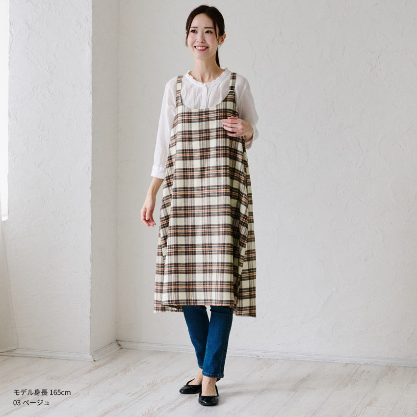 先染チェックロングワンピースエプロン ワンピース エプロン チェック ロング丈 ロング かわいい 保育士 ゆったり 大きいサイズ 大きい ギフト 可愛い かぶるだけ おしゃれ